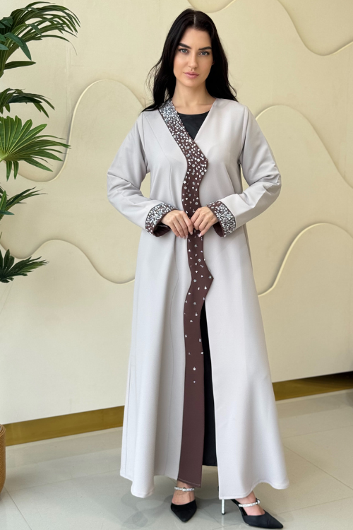 Brown panel attached to the front and sleeves, embellished with decorative details.