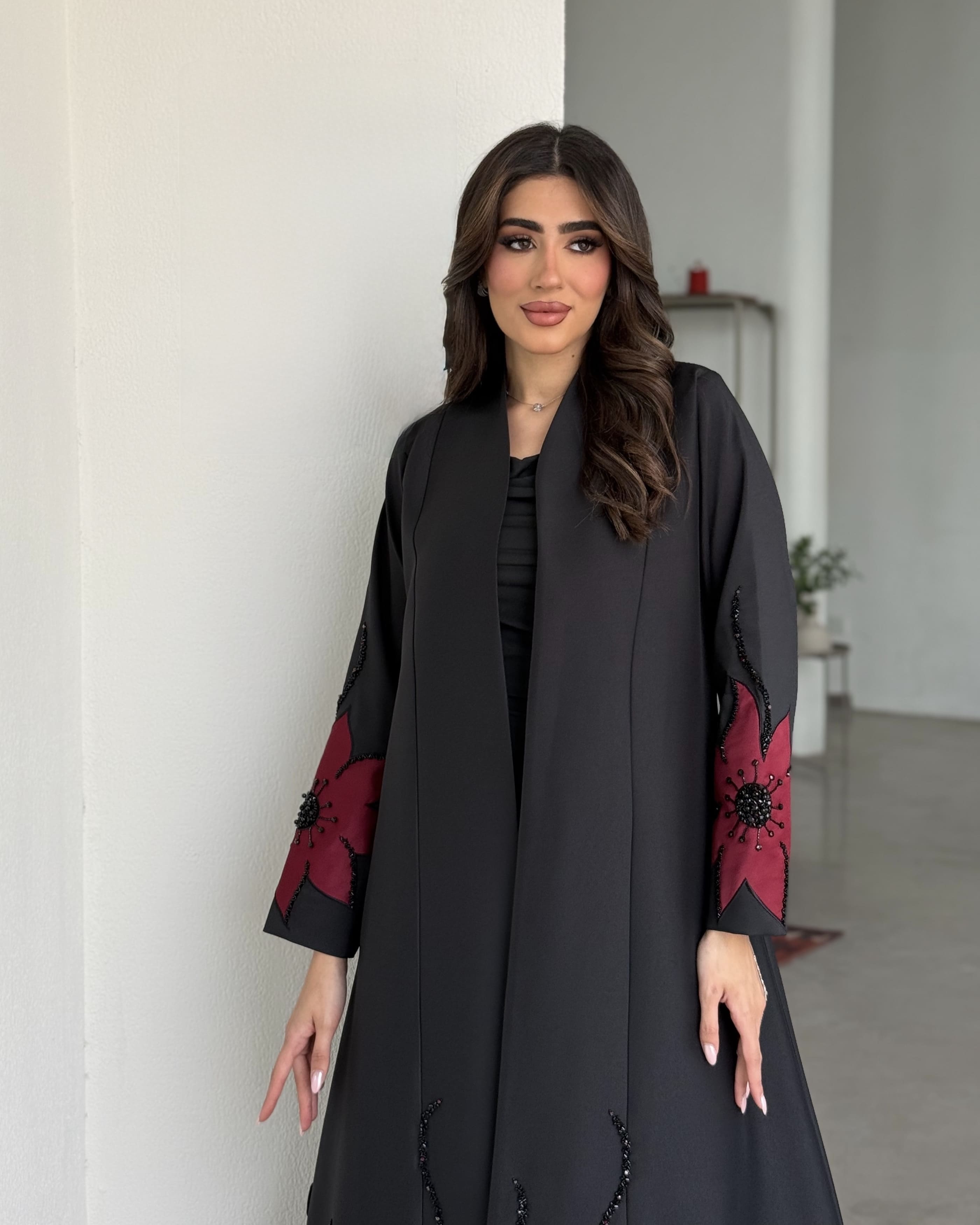 Jacket cut abaya with embellished on the side overlap