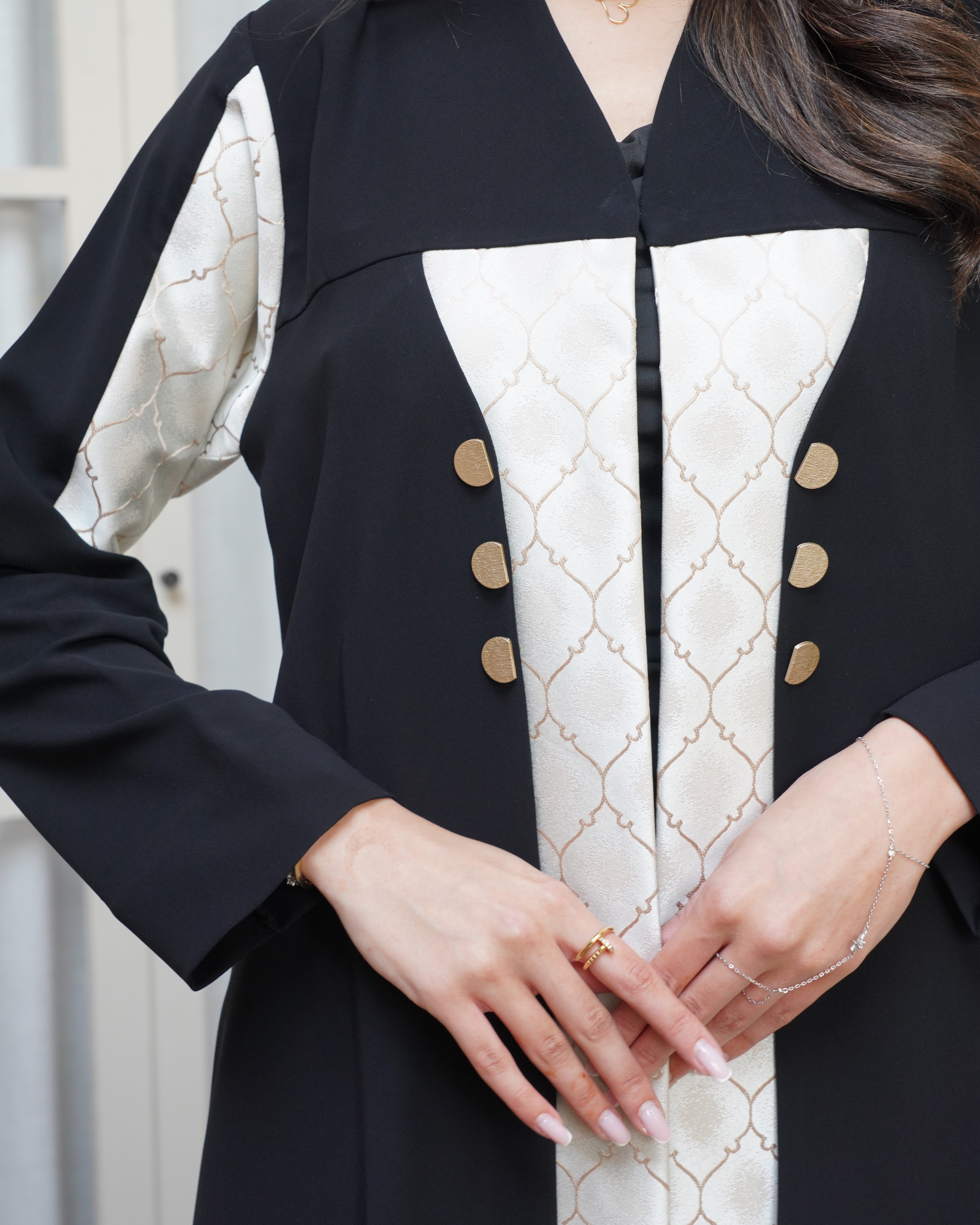 Jacket cut abaya with embellished on the side overlap